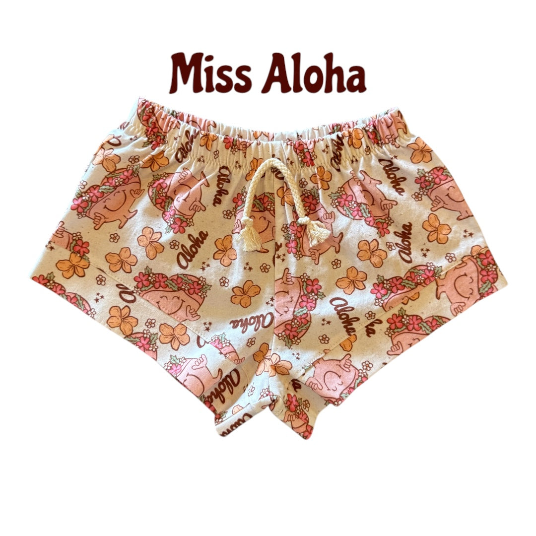 The Li‘i woven shorts are mid rise girl short with wide leg band detail. It features an elastic waistband to make it easy for keiki to pull them on and off.